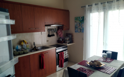 μεγάλη σαλανοκουζίνα με τζάκι, 3 υπνοδωμάτια, 1 μπάνιο, 1 wc, βεράντα μπροστά